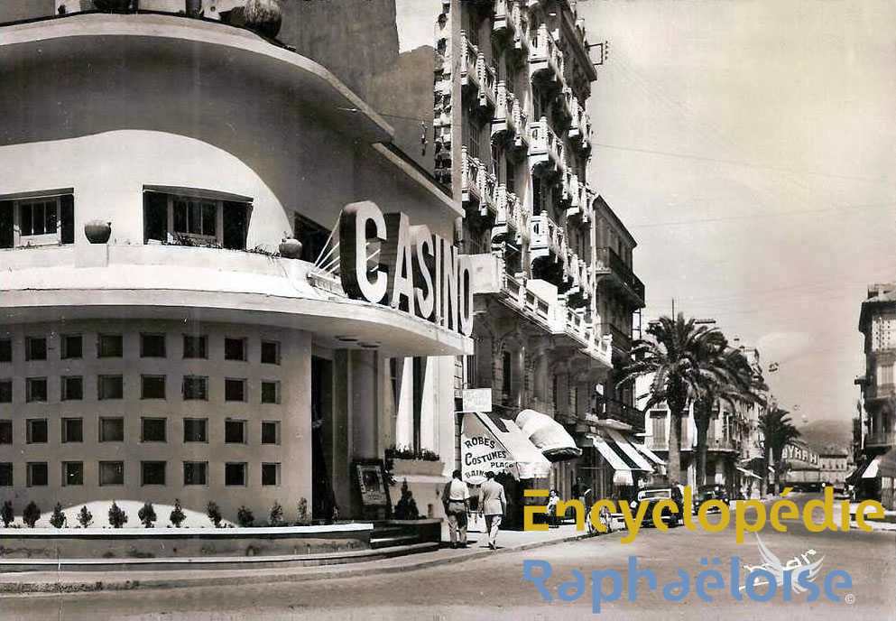 Le premier casino de Saint-Raphaël a été construit en 1881, à l’emplacement des parcelles 539 et 736. Le rez-de-chaussée, auquel on avait rajouté deux pavillons latéraux, fut transformé en établissement médical en 1891, puis en garage de réparation automobile.